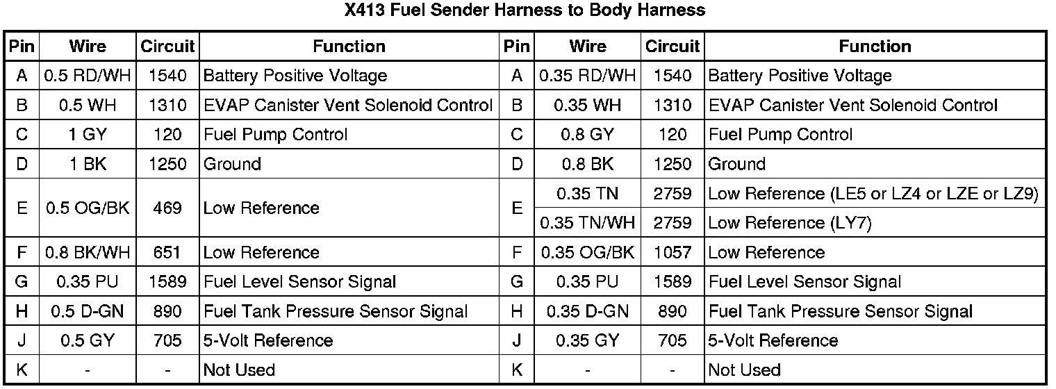 X413 Fuel Sender Harness to Body Harness