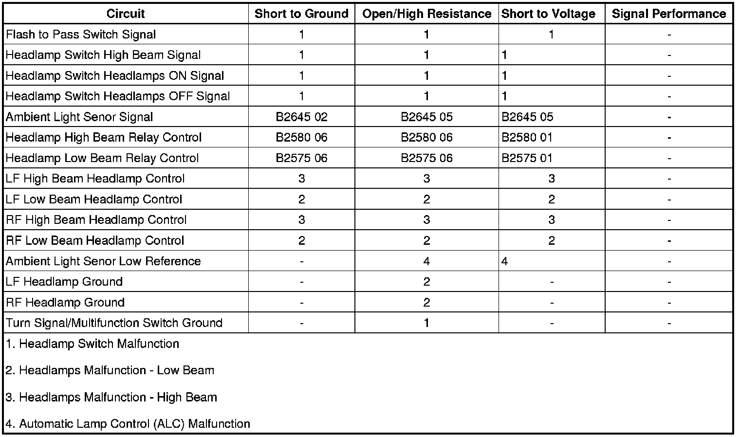 Automatic Lamp Control (ALC) Malfunction
