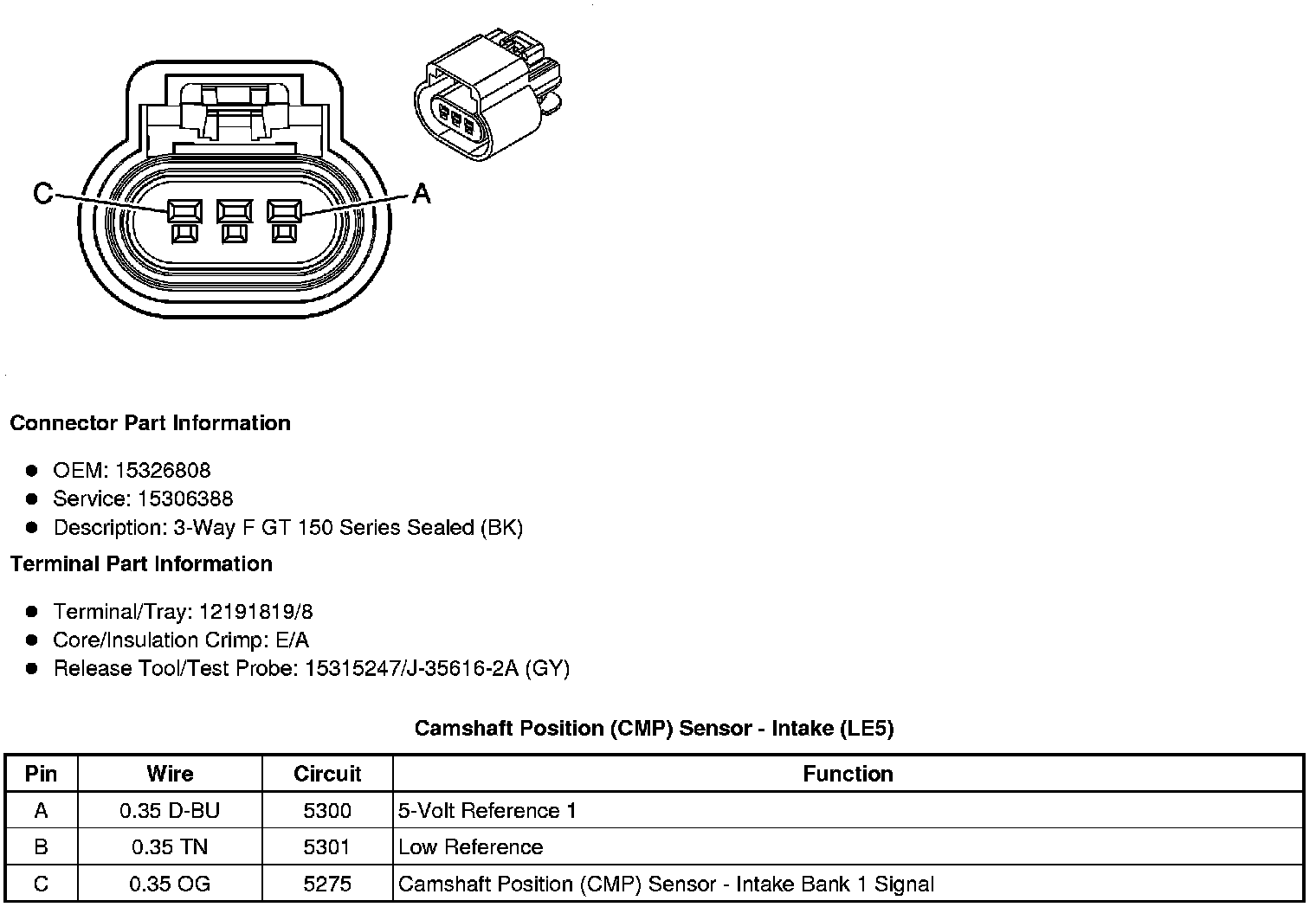 Camshaft Position (CMP) Sensor - Intake (LE5 or LE9)
