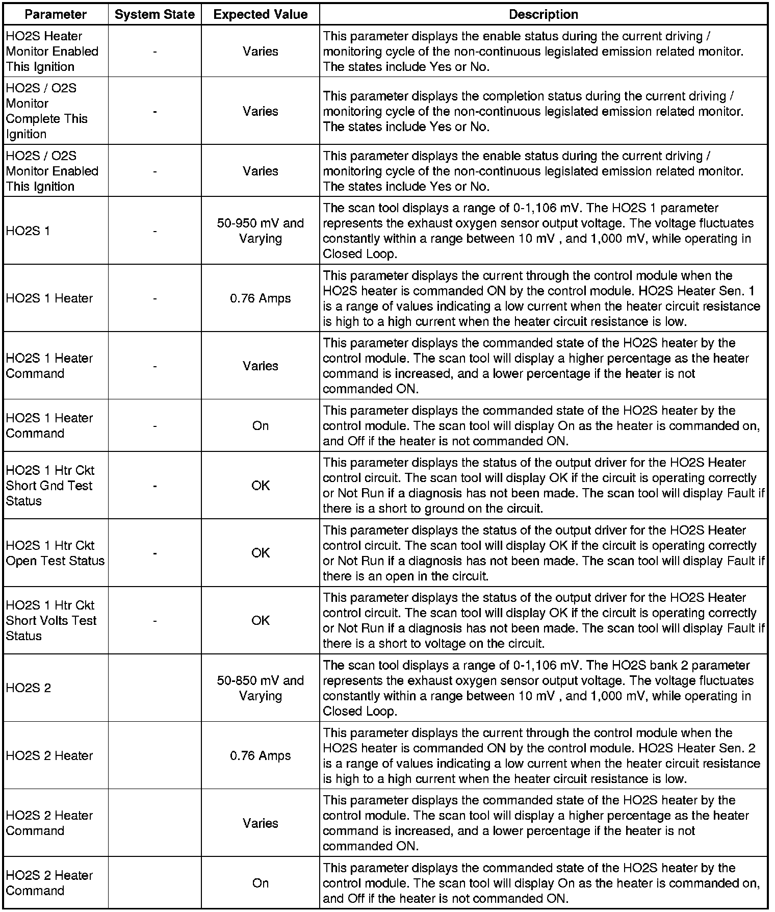 Only the parameters listed below are referenced in this service manual for use in diagnosis. If all values are within the typical range described below, refer to Symptoms - Engine Controls Symptoms - Engine Controls for the 2.4L engine for diagnosis.