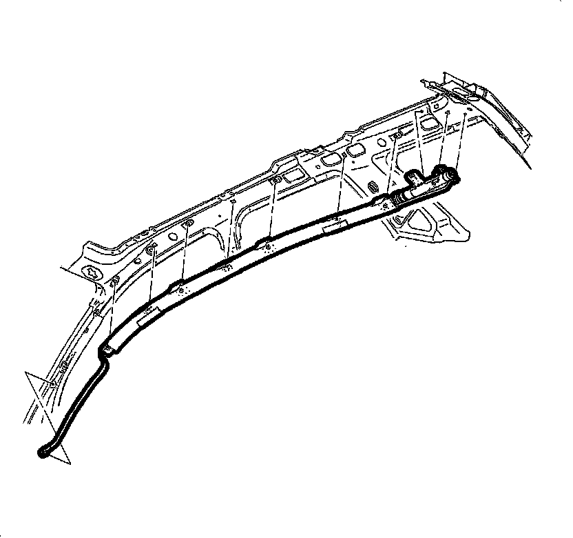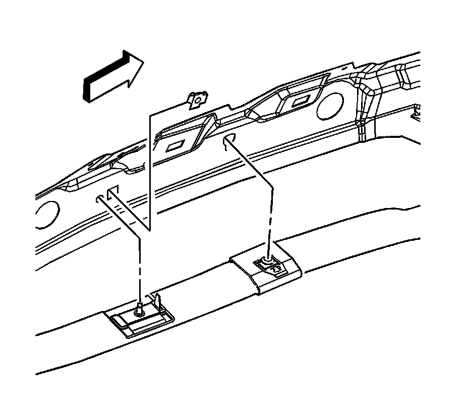 2. Working from the rear of the vehicle, install the retaining tabs to the structure to hold the inflator module in place.