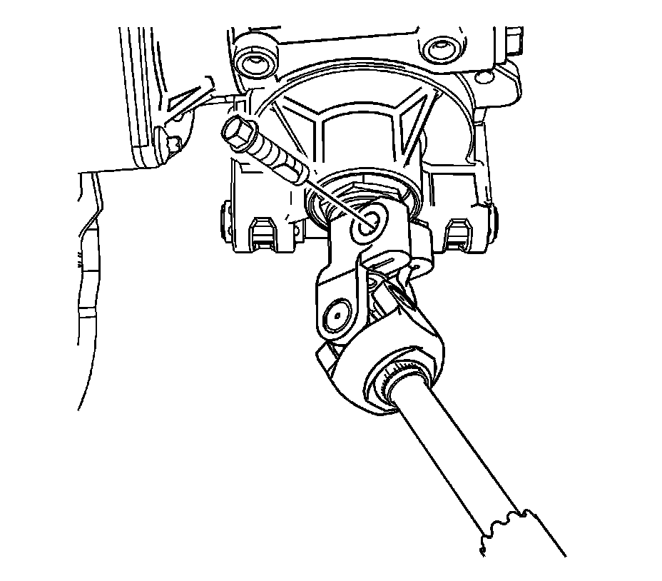 6. Remove the intermediate steering shaft bolt at the steering column and discard it.