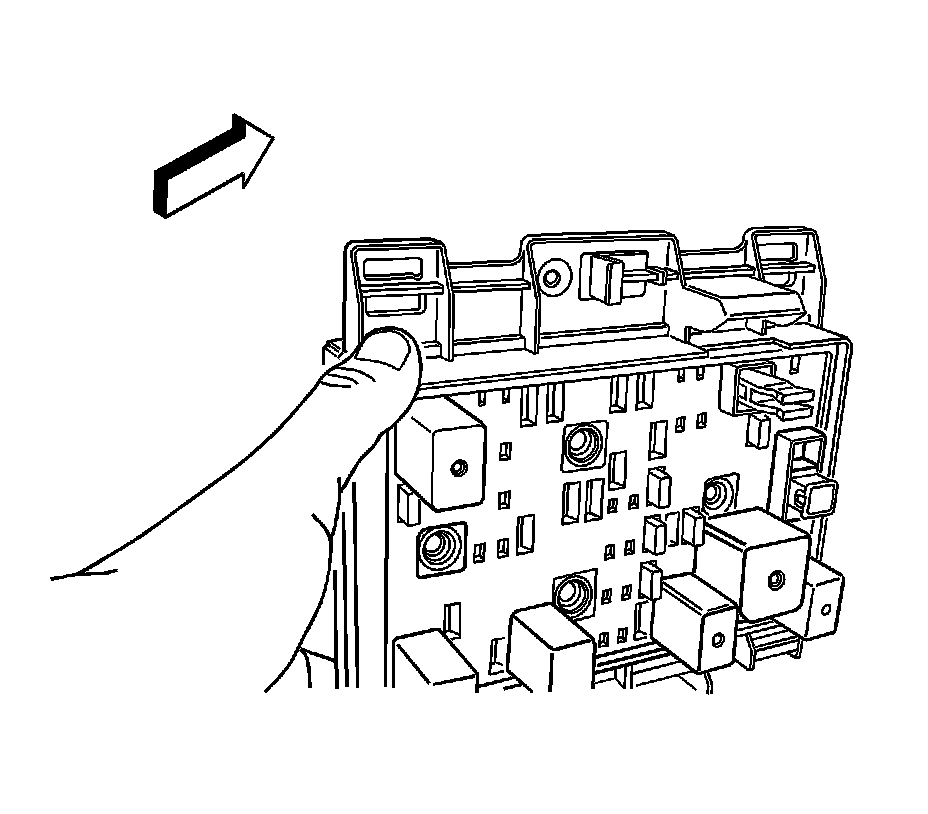 13. Remove the fastener from the body wiring junction block. Slide the junction block towards the rear of the vehicle and pull out.