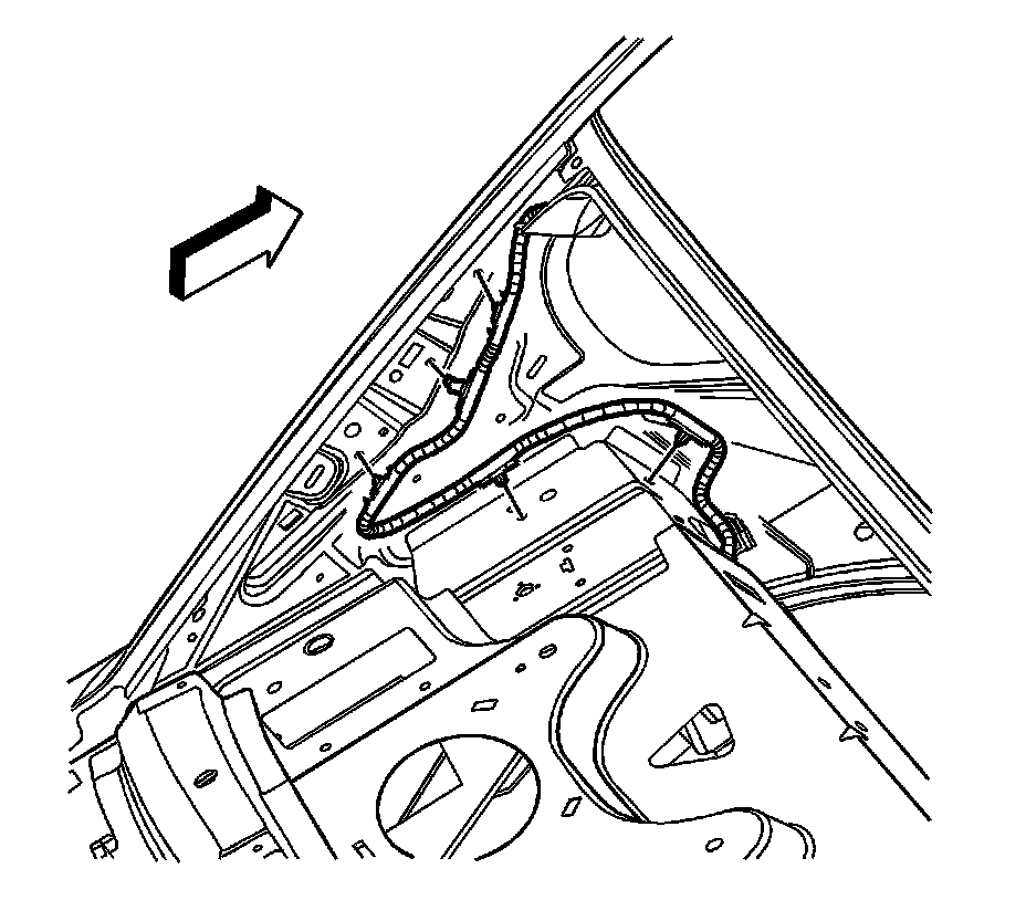 2. Remove the windshield garnish moldings. Refer to Windshield Pillar Garnish Molding Replacement (Convertible) Windshield Pillar Garnish Molding Replacement (Convertible)Windshield Pillar Garnish Molding Replacement (Sedan) Windshield Pillar Garnish Molding Replacement (Sedan).