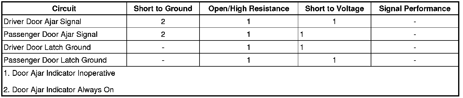 * Passenger door latch signal circuit terminal 1 and ground circuit terminal 3