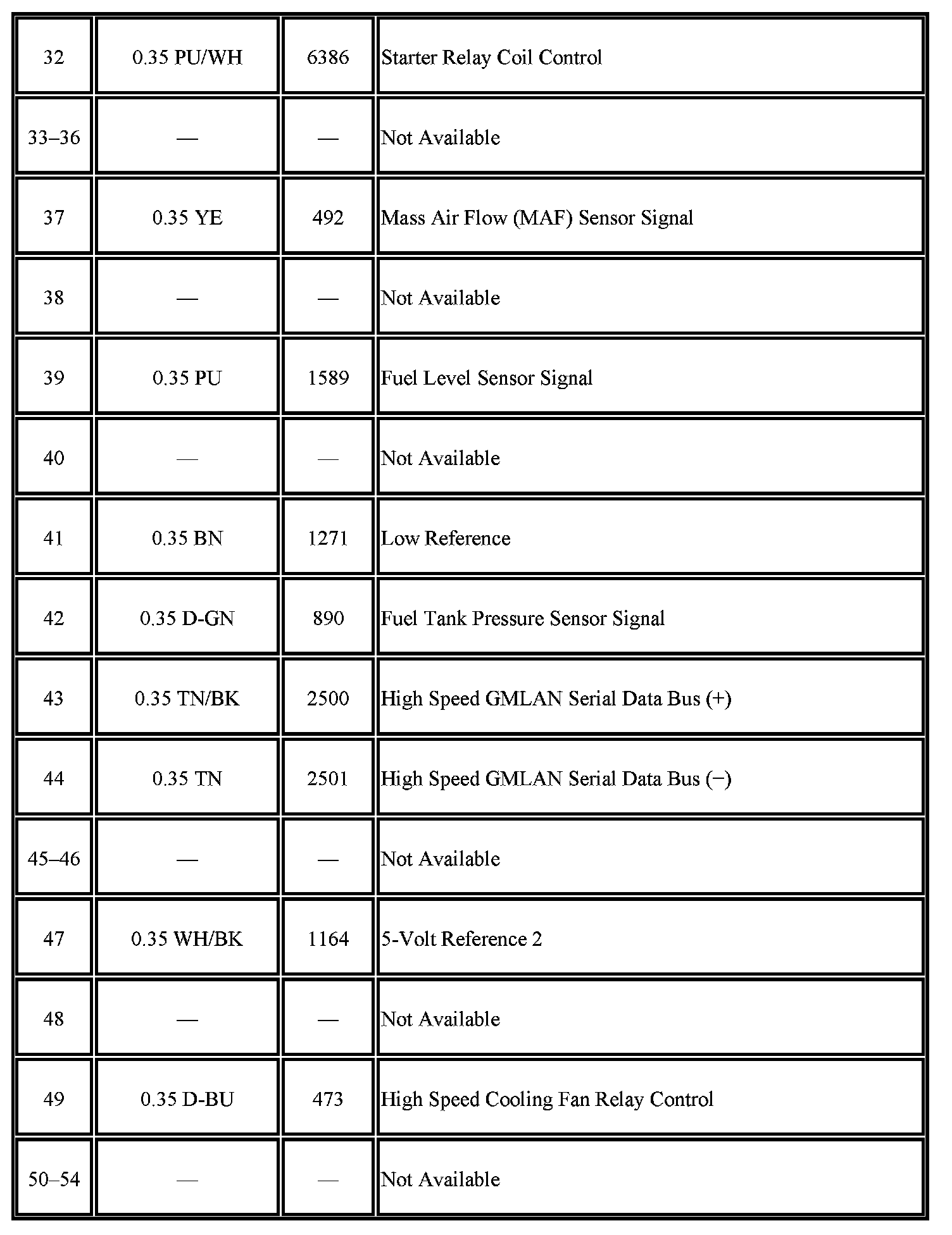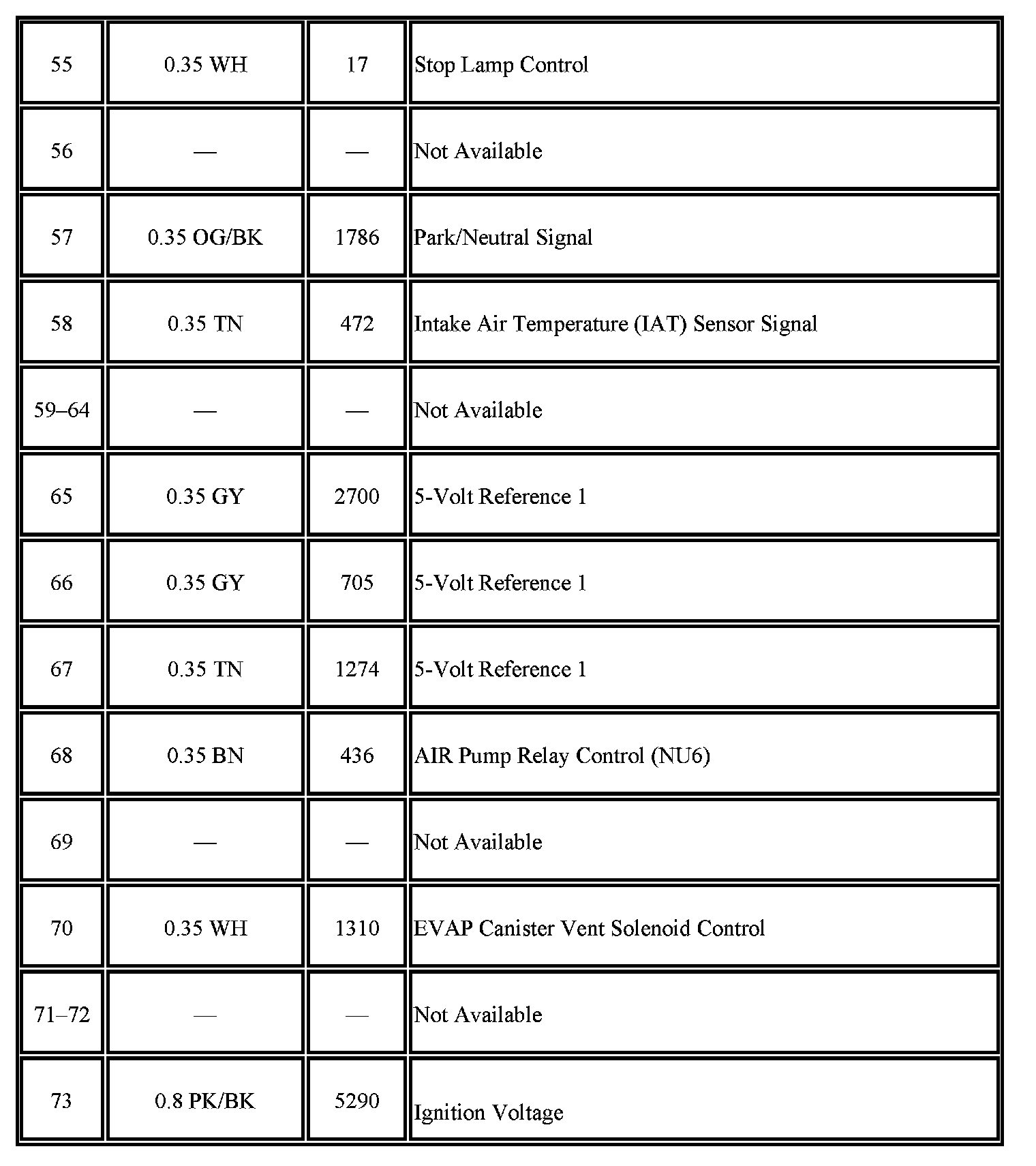- Pins; 1-3, 5, 6, 8-10, 13, 15-18, 20-25, 27, 30, 32, 37, 39, 41-44, 47, 49, 55, 57, 58, 65-68, 70