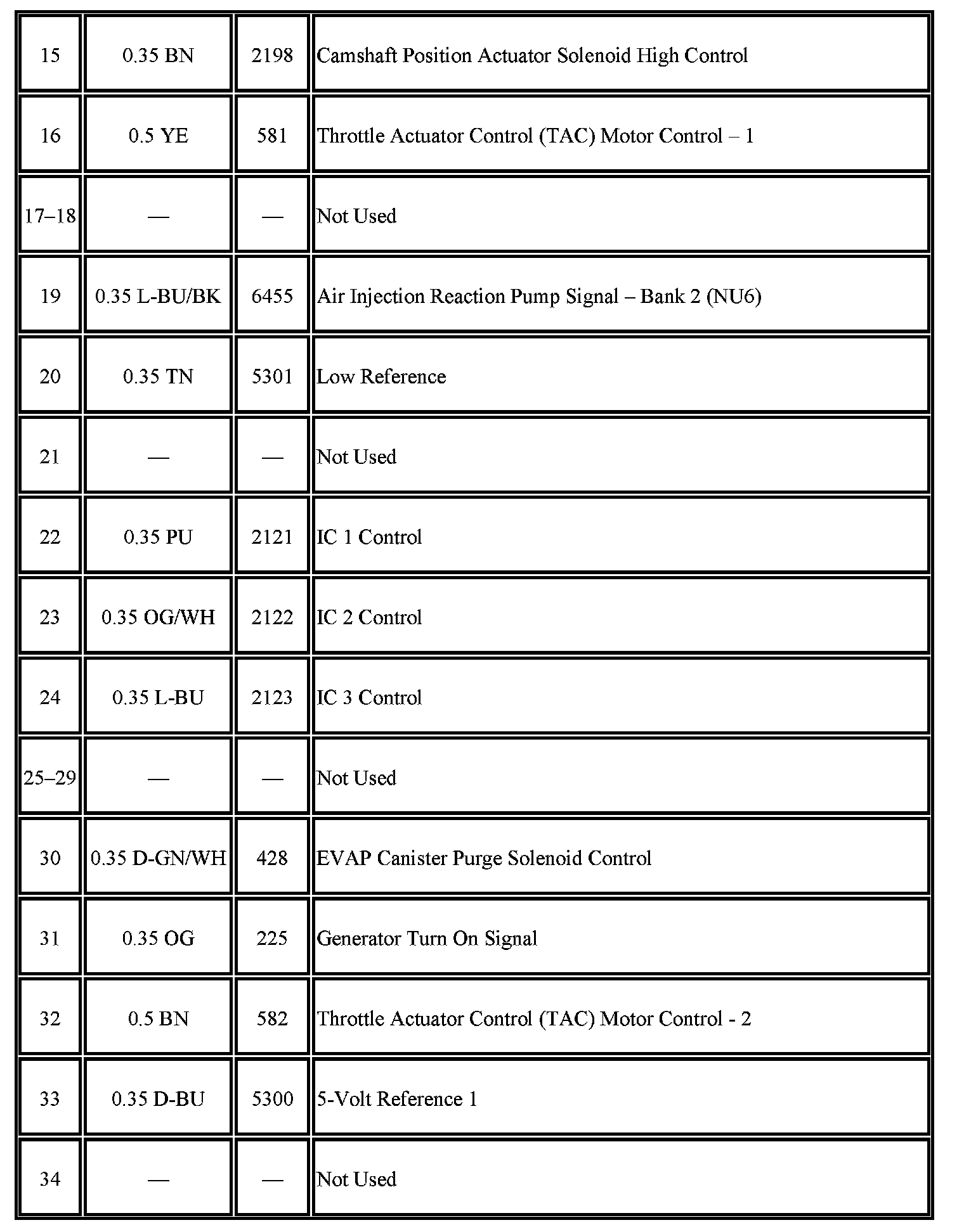 - Pins: 2-5, 9, 15, 19-20, 22-24, 30-31, 33, 35-38, 40-43, 45-46, 48, 53-60, 63-66, 68