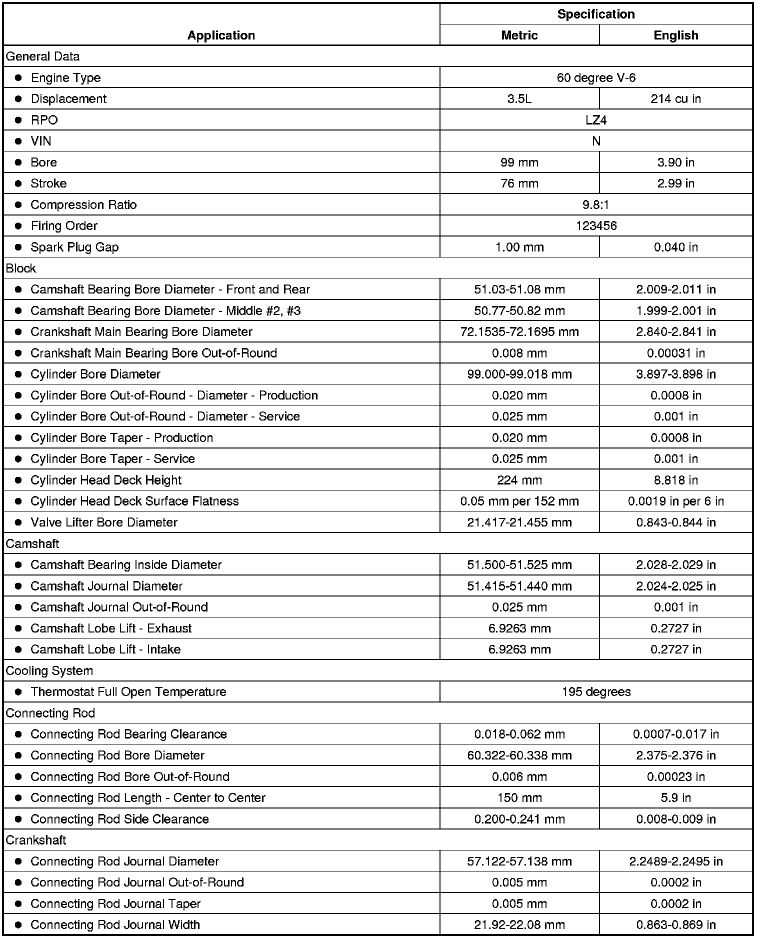 Engine Mechanical Specifications