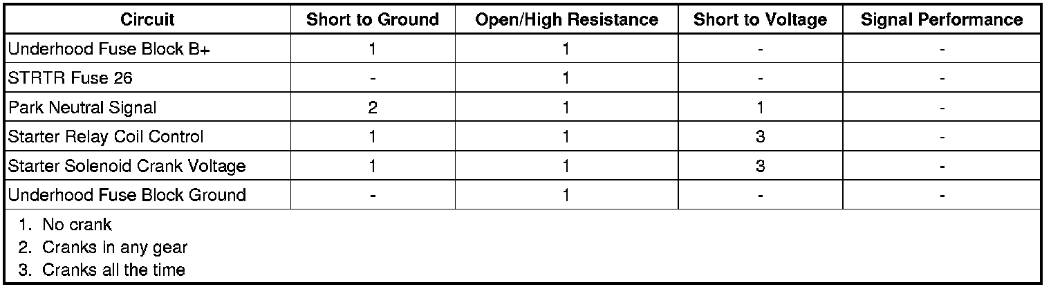 • If the test lamp does not illuminate, test the B+ circuit for a short to ground or an open/high resistance. If the circuit tests normal and the STRTR fuse is open, test the relay controlled output circuit for a short to ground.