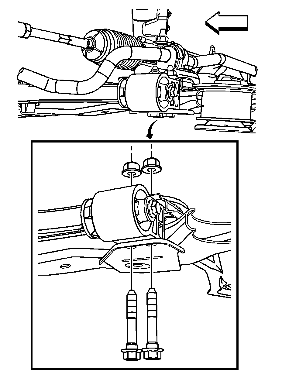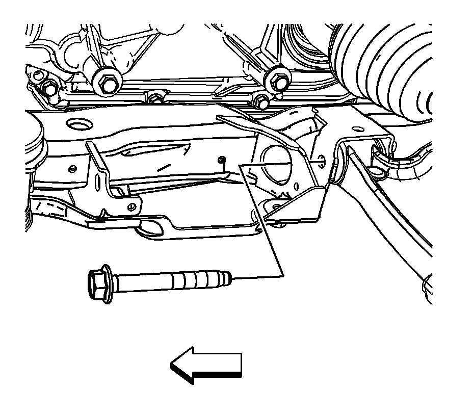 8. Remove the rear lower control arm bushing nuts and bolts. Refer to Front Lower Control Arm Bushing Replacement Service and Repair.