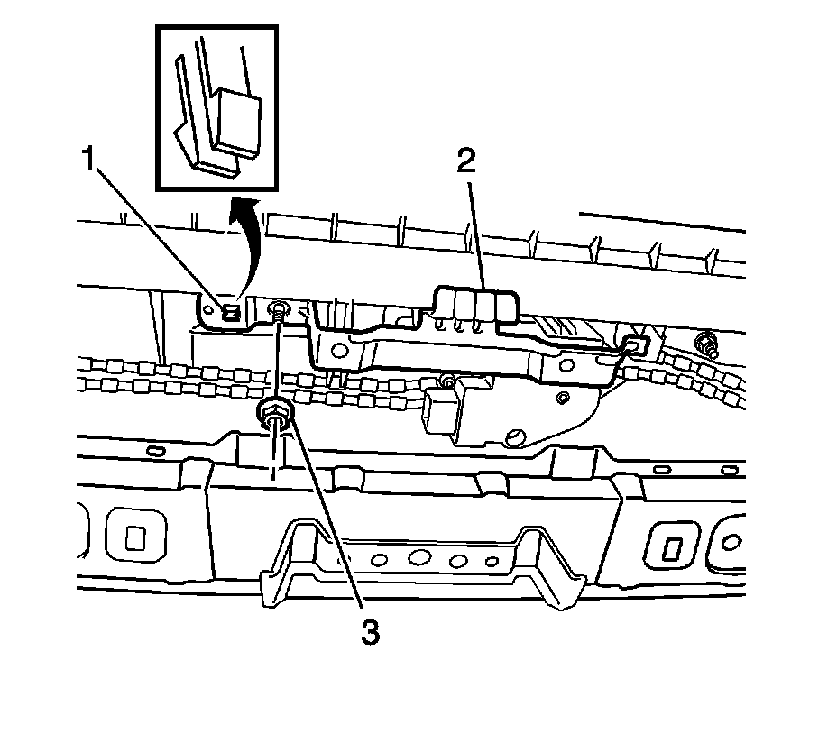 3. Disengage the clip (1) and install the light bracket (2).