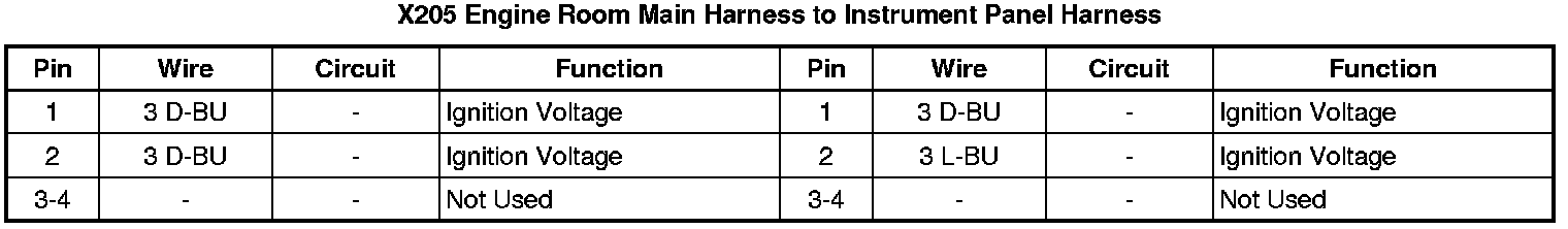X205 Engine Room Main Harness to Instrument Panel Harness