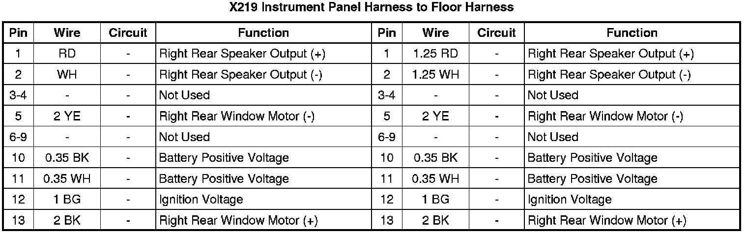 X219 Instrument Panel Harness to Floor Harness