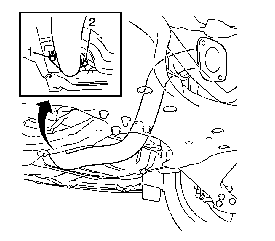 5. Install the 2 bolts (1) into the catalytic converter pipe and tighten to43 Nm (32 lb ft).