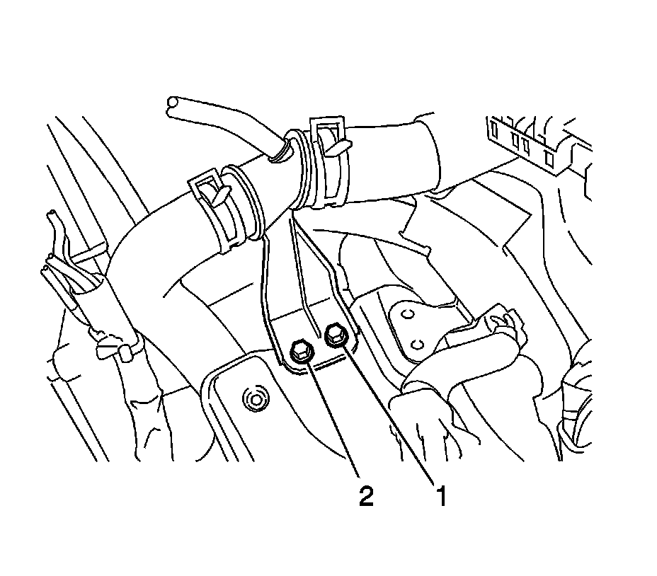 2. Connect the radiator pipe with the 2 bolts (1, 2).