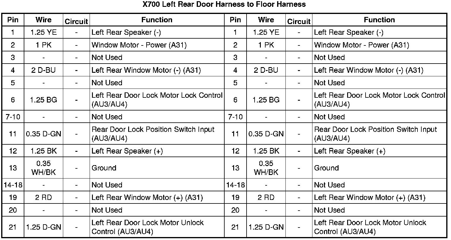X700 Left Rear Door Harness to Floor Harness