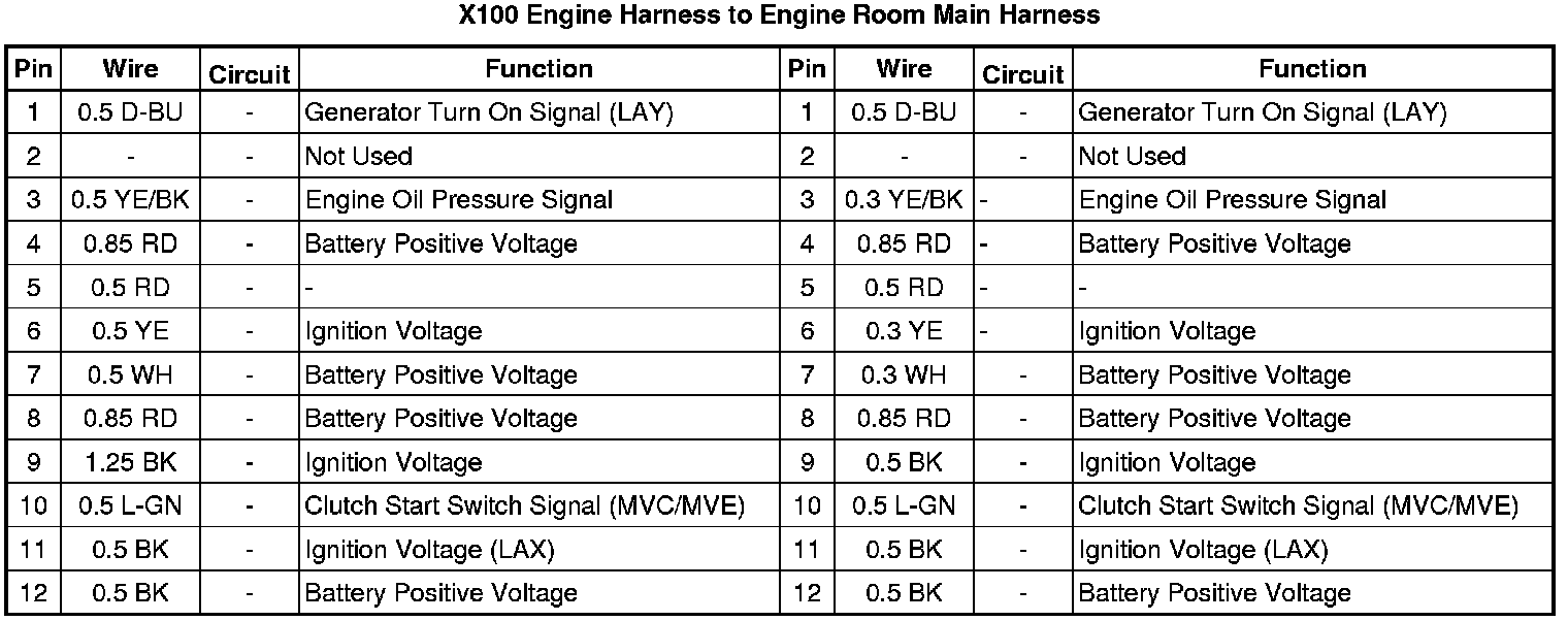 X100 Engine Harness to Engine Room Main Harness