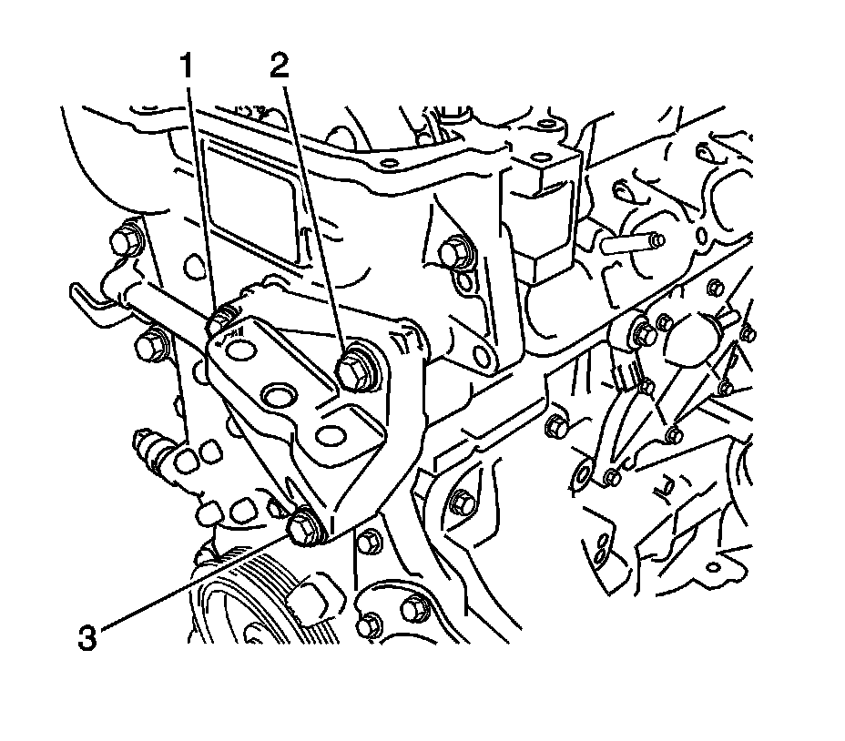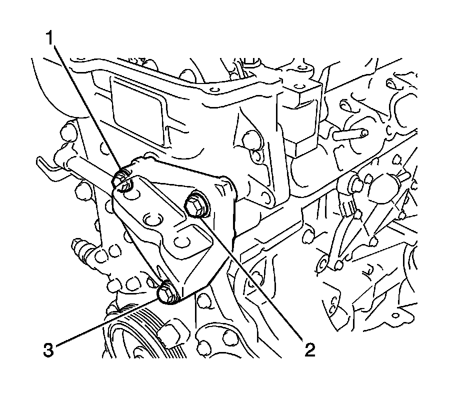 26. Hand tighten the engine mounting bracket with the 3 bolts (1, 2, 3).