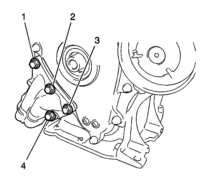21. Remove the 3 bolts (1-3) and engine mounting bracket.