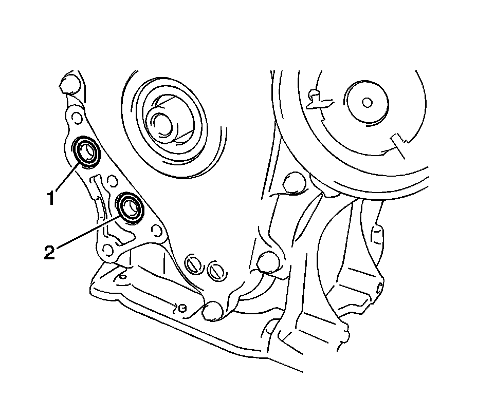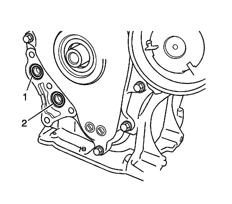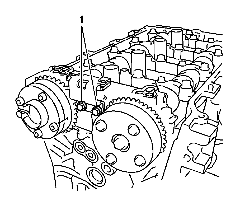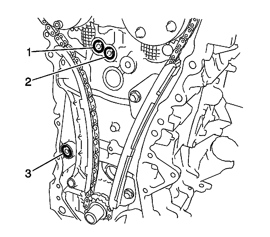 14. Install the chain vibration damper with the 2 bolts (1) and tighten to 10 Nm (7 lb ft).