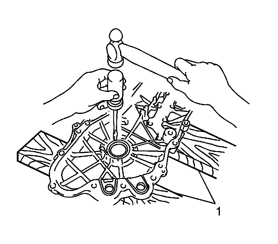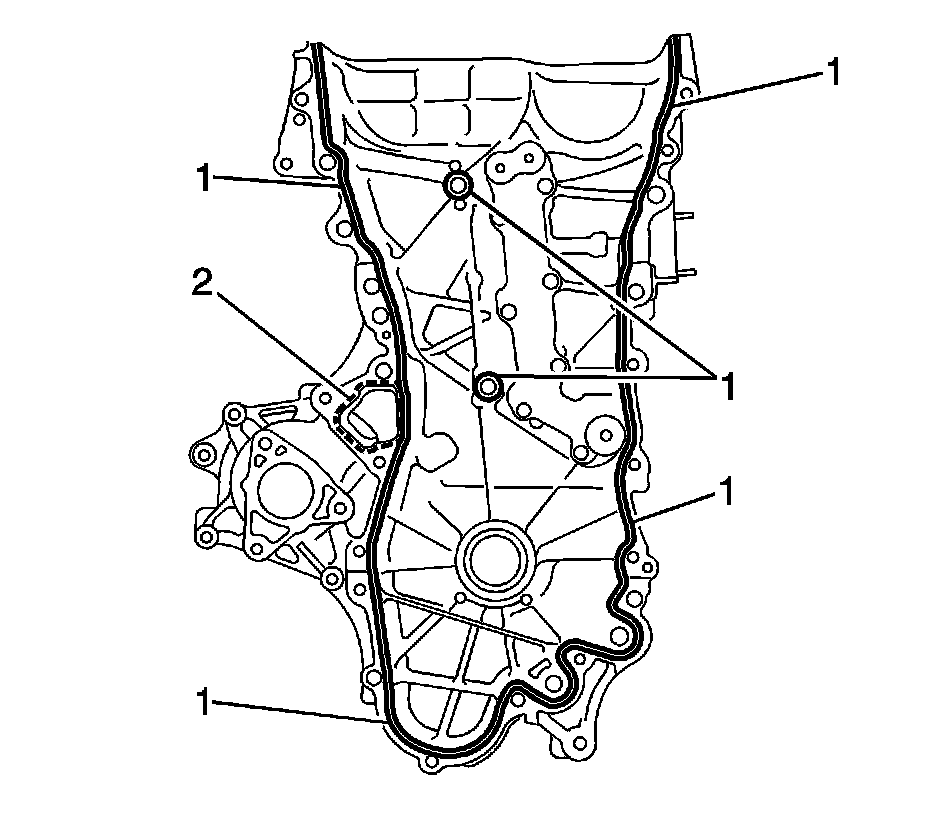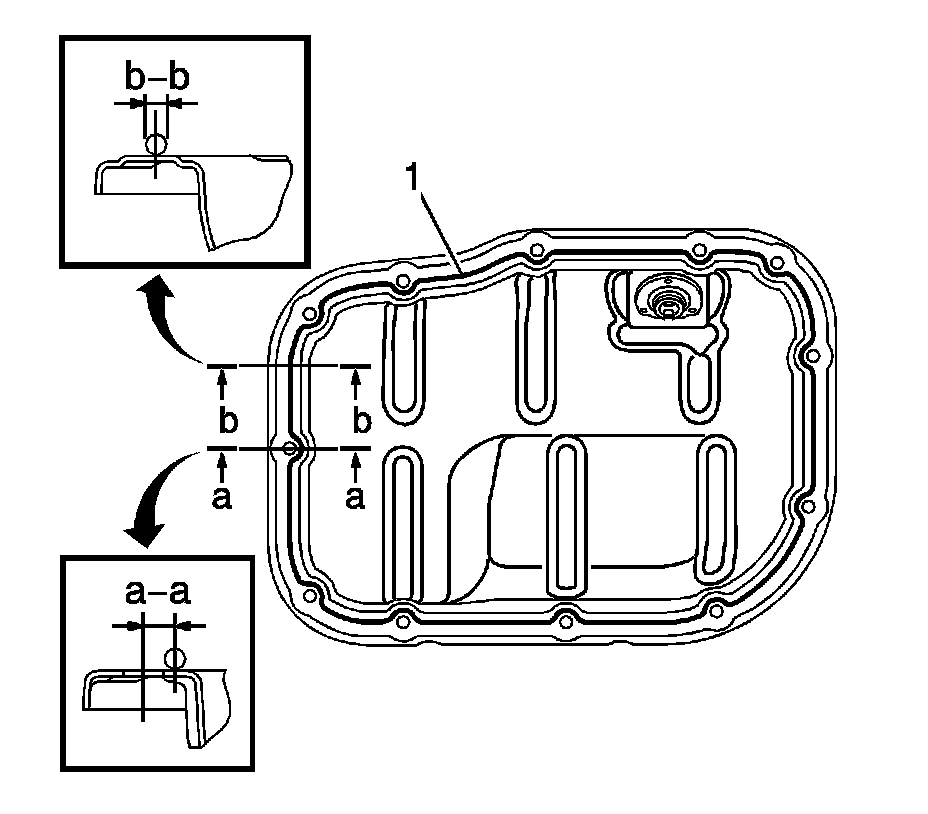 3. Apply a continuous bead of sealant (1), diameter: 4.0 mm (0.157 in), as shown in the illustration, Three Bond 1217B, or equivalent, GM part number 12378521 (Canadian part number 88901148).