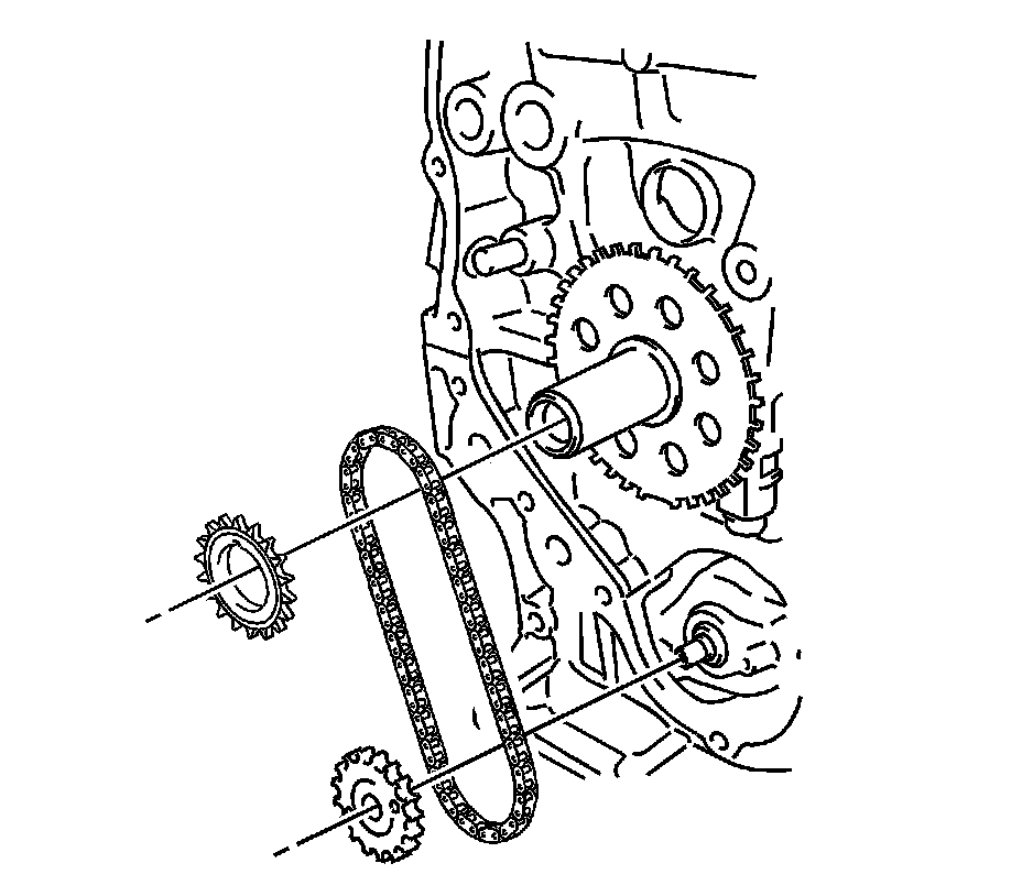 9. Install the sprockets onto the crankshaft and oil pump shaft with the chain on the gears.