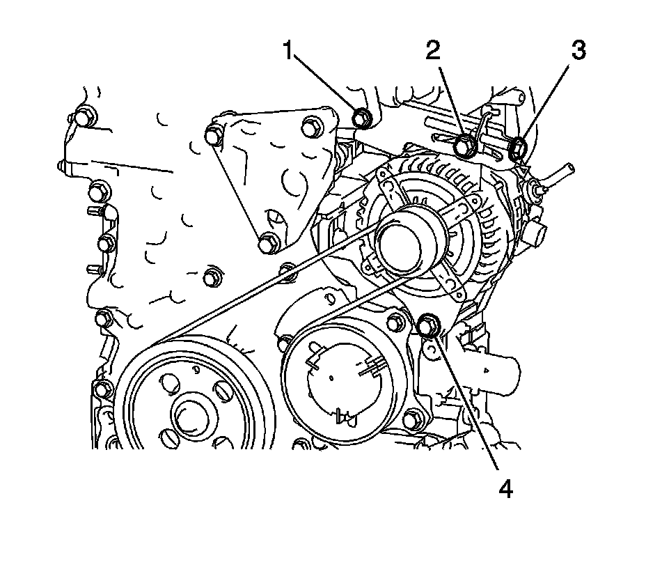 2. Loosen bolt (3) then remove the V-ribbed belt.