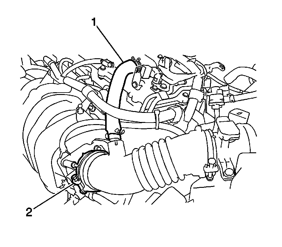 5. Disconnect the ventilation hose and loosen the hose clamp (2).