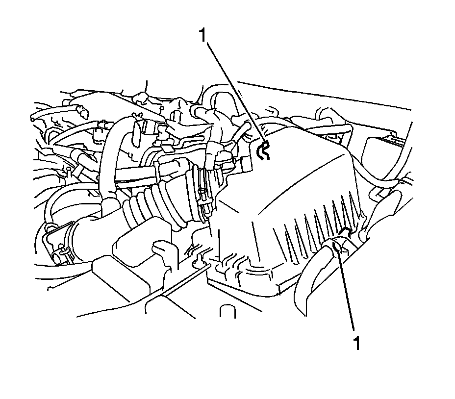 6. Unlock the 2 clamps (1) and remove the air cleaner cap sub-assembly with hose.