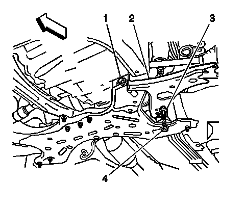 2. Lower the front suspension crossmember as far as necessary to remove the control arm fasteners. Refer to Front Suspension Crossmember Replacement (All Wheel Drive) (Front Suspension Crossmember Replacement)Front Suspension Crossmember Replacement (Two Wheel Drive) (Front Suspension Crossmember Replacement).