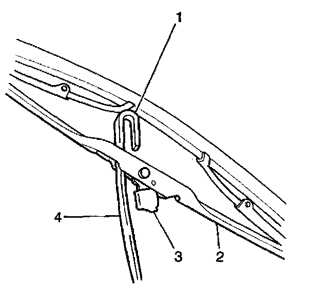 3. Push the retaining tab (3) and slide the wiper blade (2) toward the vehicle.