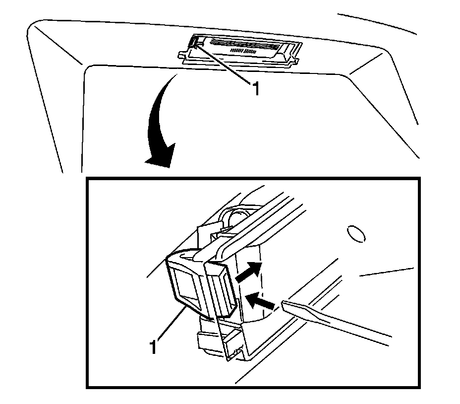 1. Using a flat-bladed tool, disconnect the retaining tabs (1).