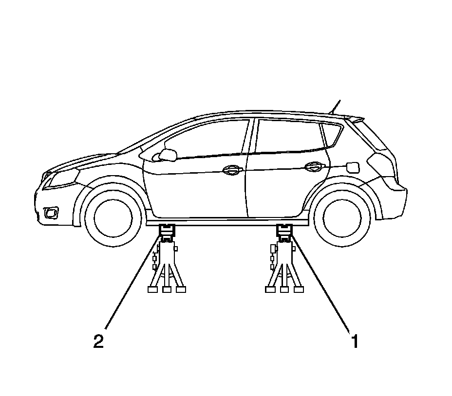 Danger: To avoid any vehicle damage, serious personal injury or death when major components are removed from the vehicle and the vehicle is supported by a hoist, support the vehicle with jack stands at the opposite end from which the components are being removed and strap the vehicle to the hoist.