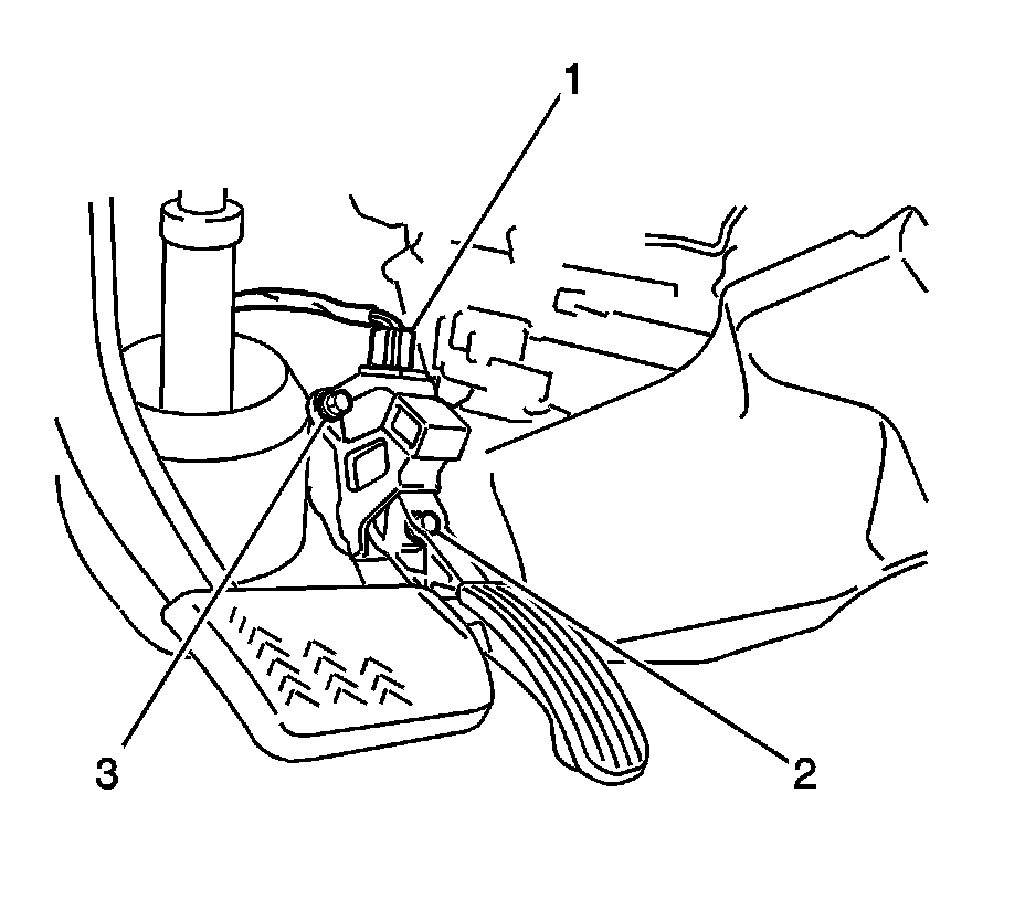 1. Install the accelerator pedal assembly with the 2 bolts (2, 3) and tighten to 5.5 Nm (49 lb in).