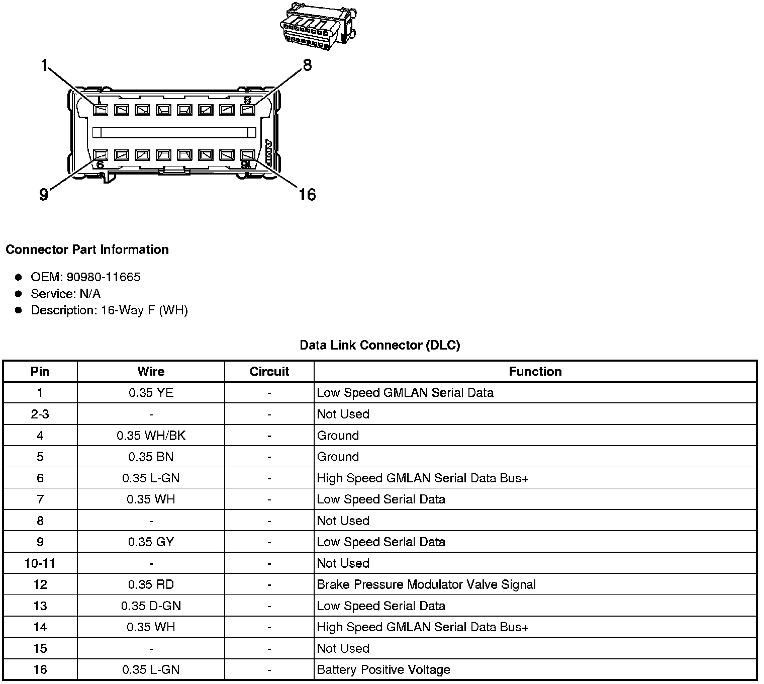 Data Link Connector: Diagrams