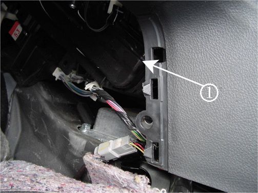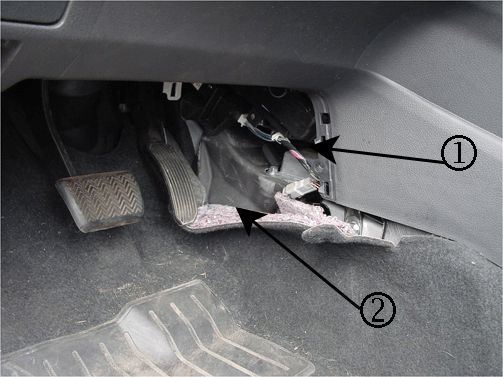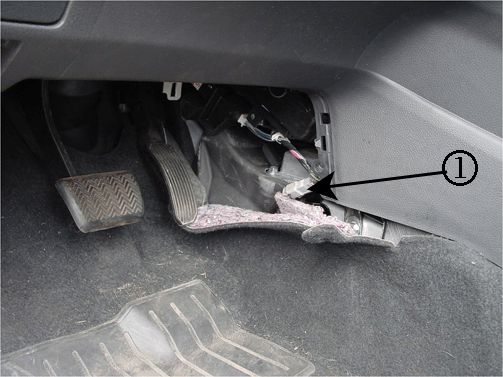 1. Remove the side IP panel (1) then move the carpet back to gain access to the HO2S connector.