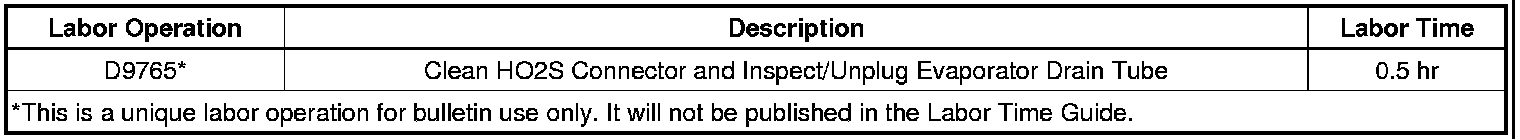 This condition may be caused by water leaking from the evaporator onto the electrical connector in the center IP area. The evaporator drain may be restricted, causing water to drip from the evaporator case onto the post HO2S connector. This creates a path for current to flow from the heater circuit to the HO2S signal circuit. There may not be carpet wet from this leak, only the connector.
