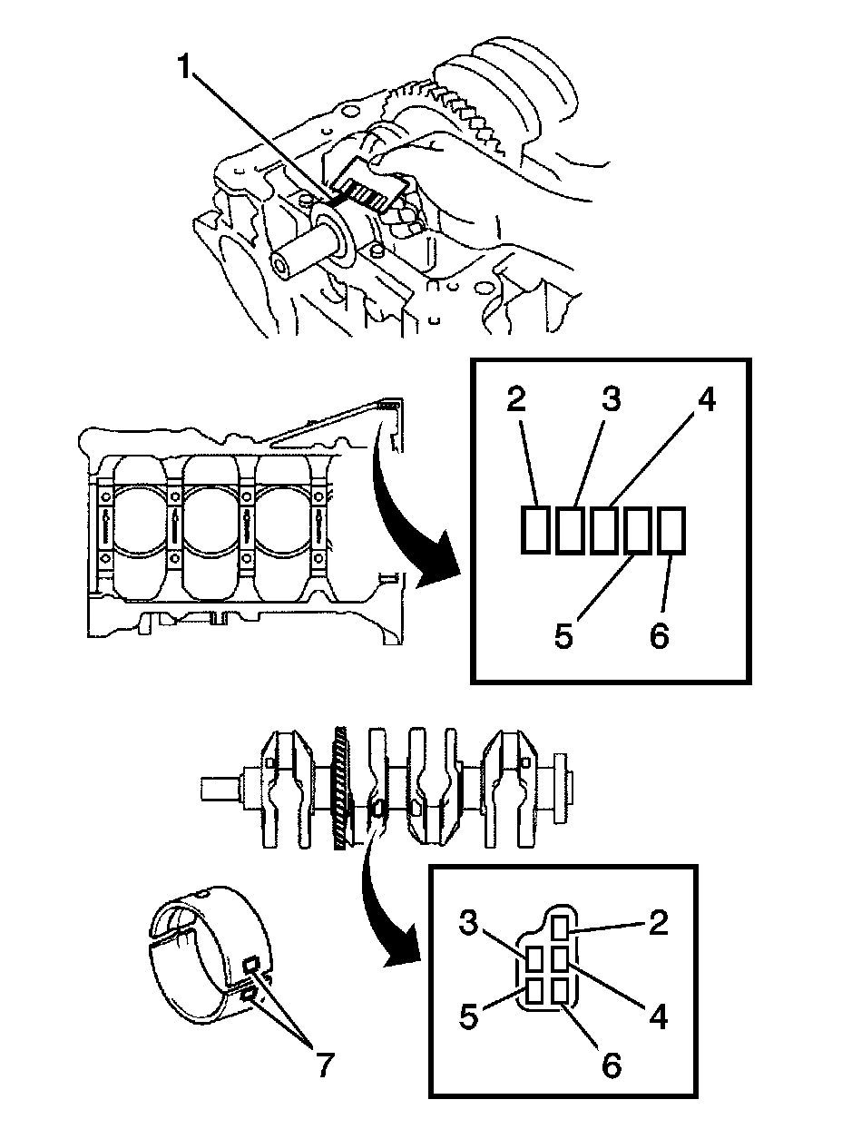 EXAMPLE: Cylinder block 3 + Crankshaft 5 = Total number 8 (Use bearing 3)