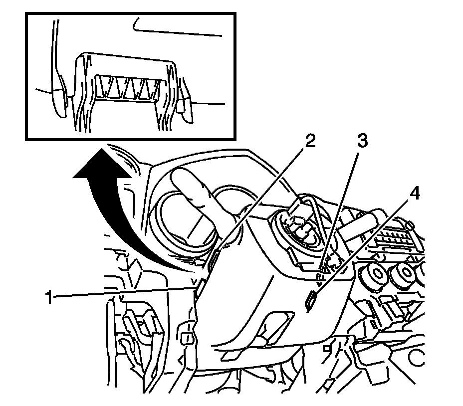 1. Push the right and the left sides of the lower steering column trim cover in order to disengage the 4 claws (1, 2, 3, 4).