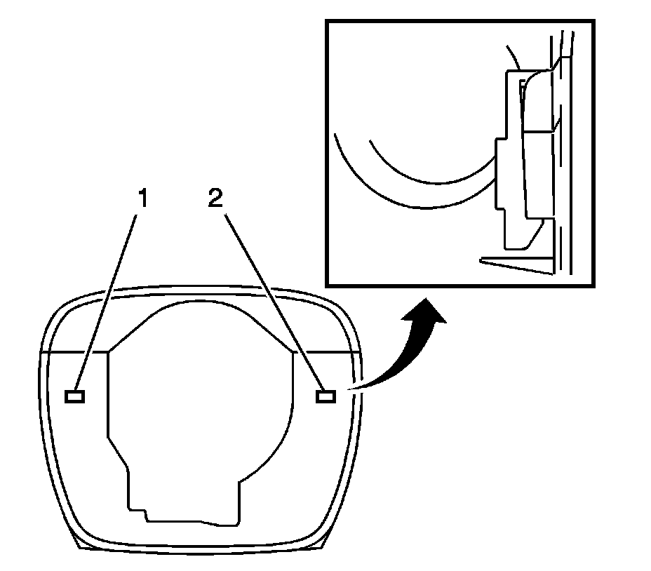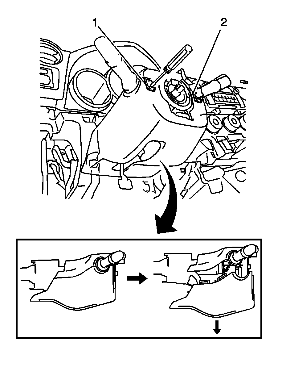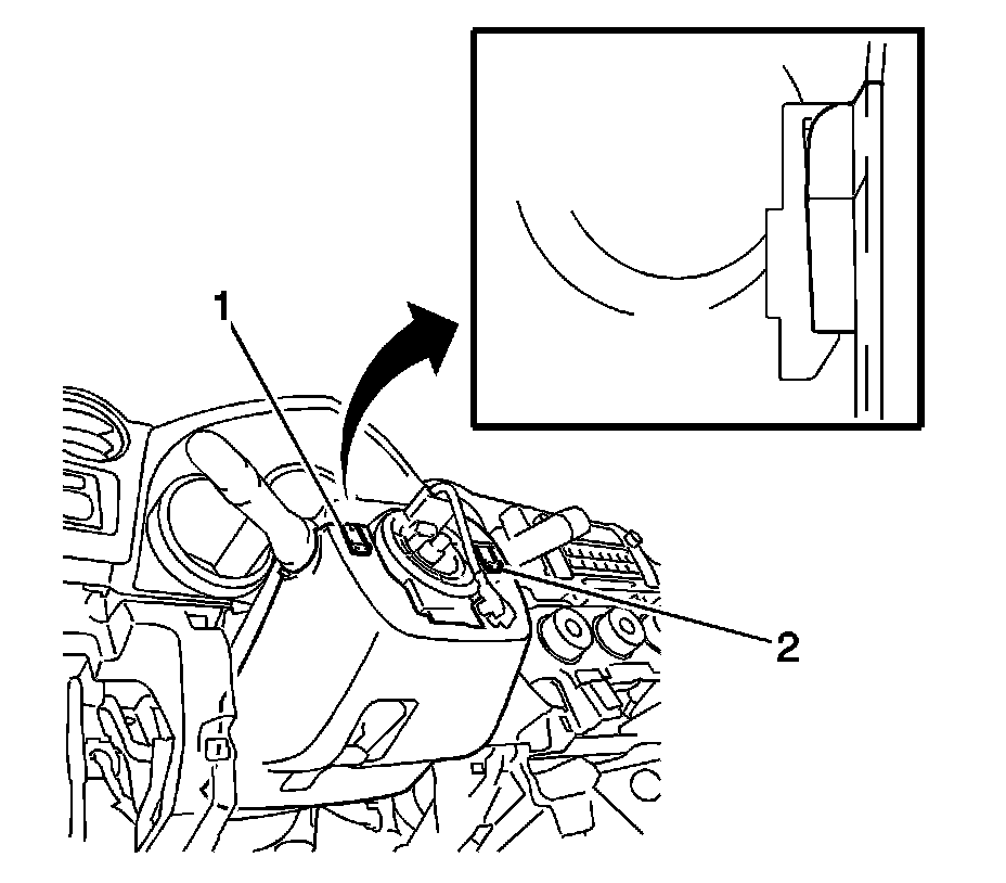 1. Engage the claws (1, 2) and install the upper steering column trim cover to the steering column.