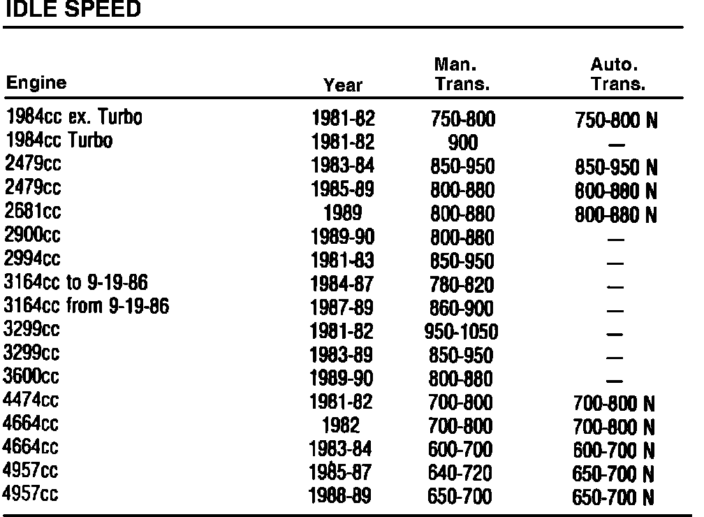 Idle Speed Specifications: