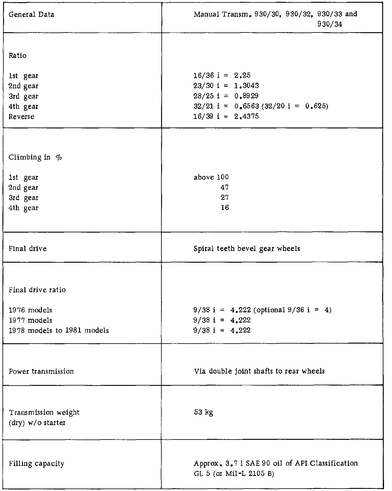 Deviating Values For Type 930/34 Transmission Are In Brackets.: