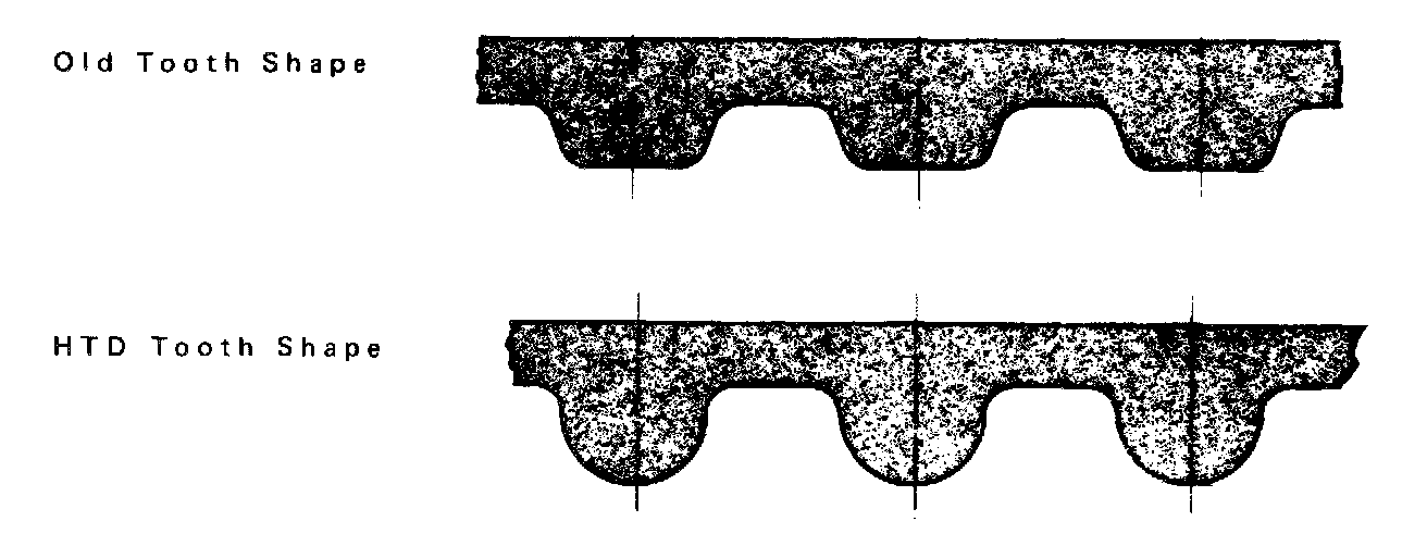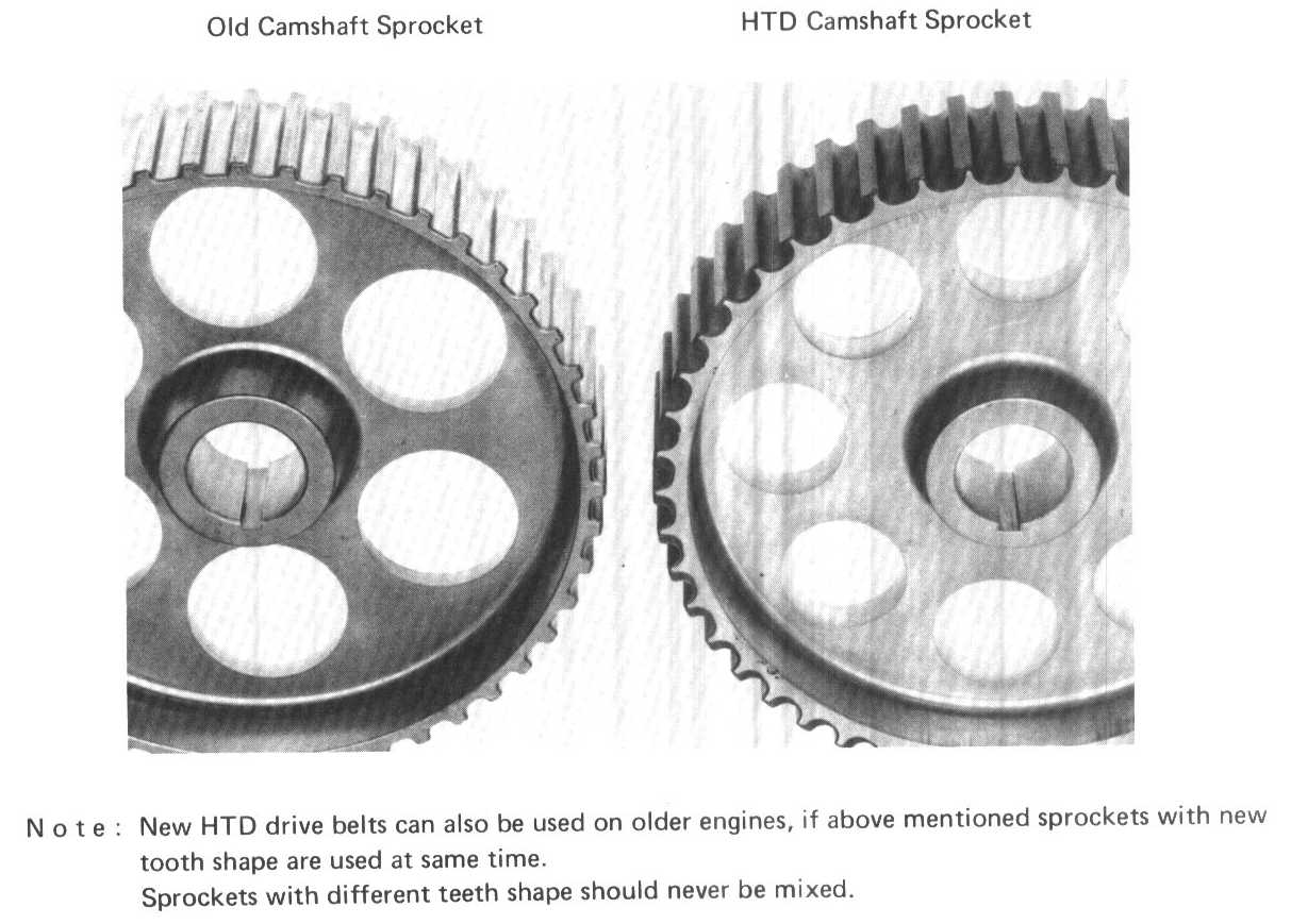 Note: The shape of teeth on drive belts for camshaft sprockets, oil pump sprocket and crankshaft sprocket has been changed to High Torque Drive (HTD).