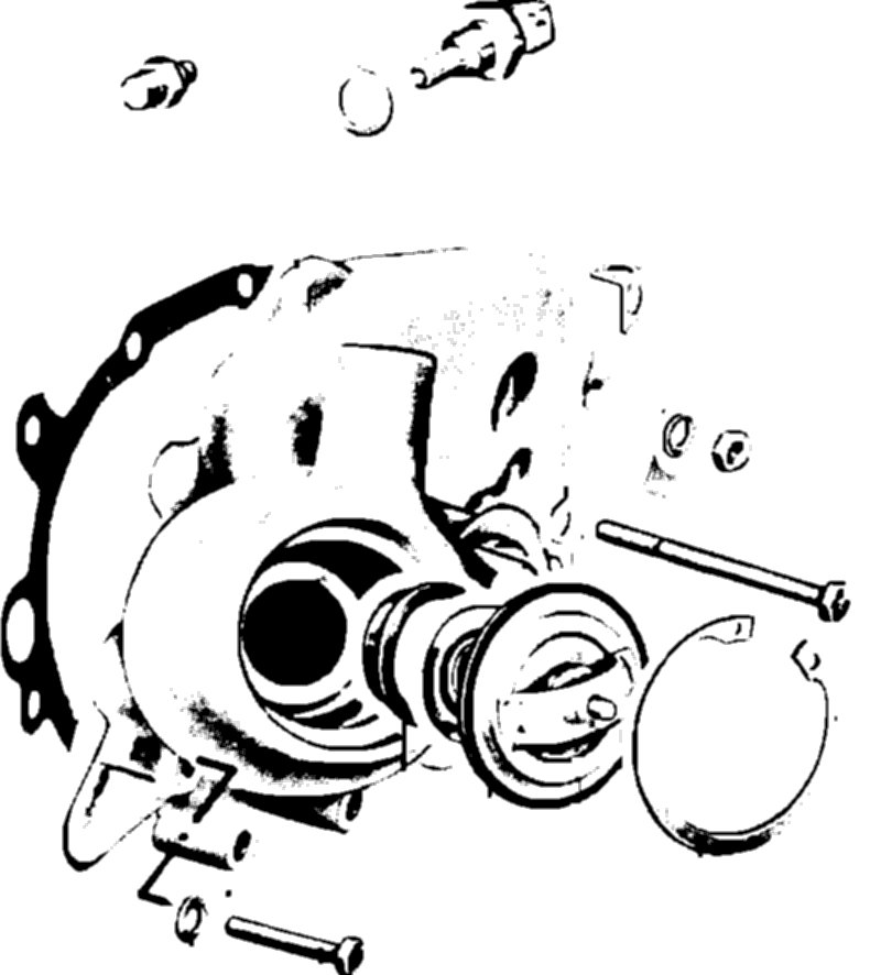 Thermostat is located on the inlet side of the water pump and can be removed without removing the water pump using a specially bent pair of snap ring pliers.