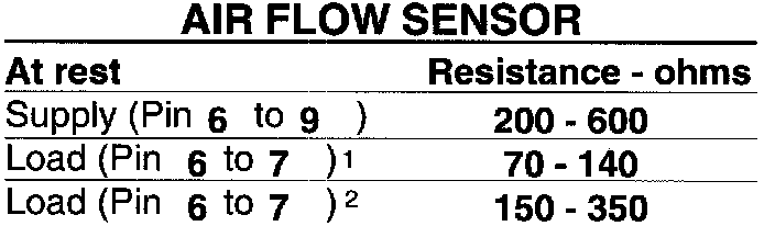 1 Flap on air flow sensor closed or air flow sensor plate at rest position. Resistance increases as flap or plate opens.