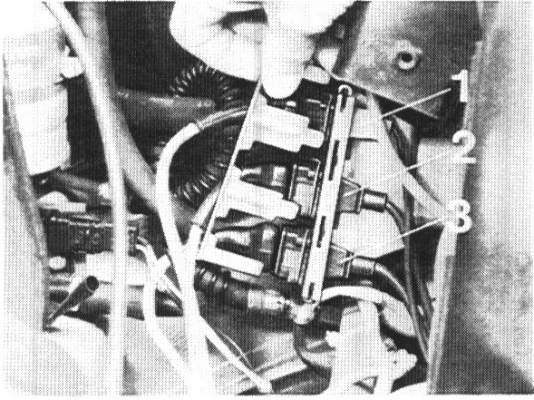 1. Pull out arrest on holder of plugs and disconnect upper plug (1).