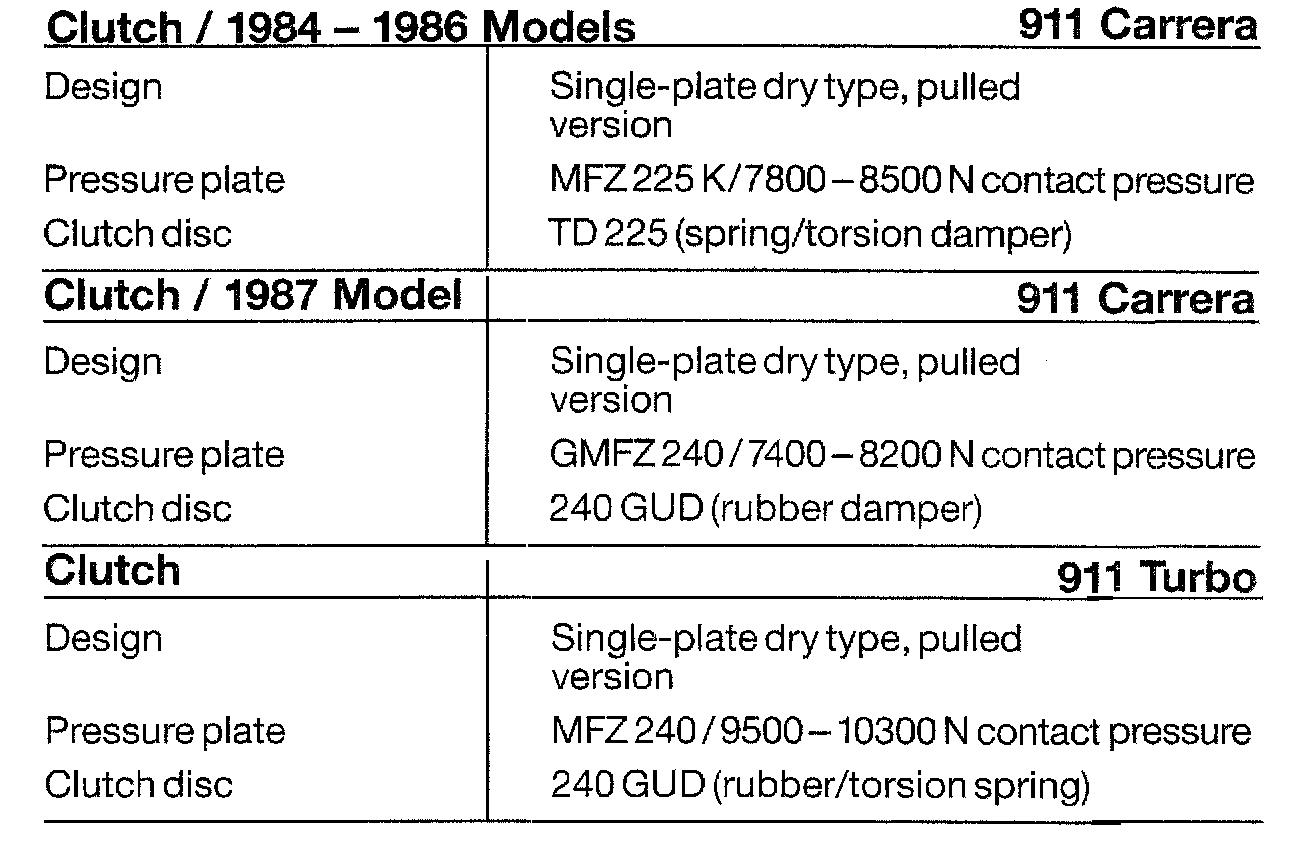 Clutch Technical Data: