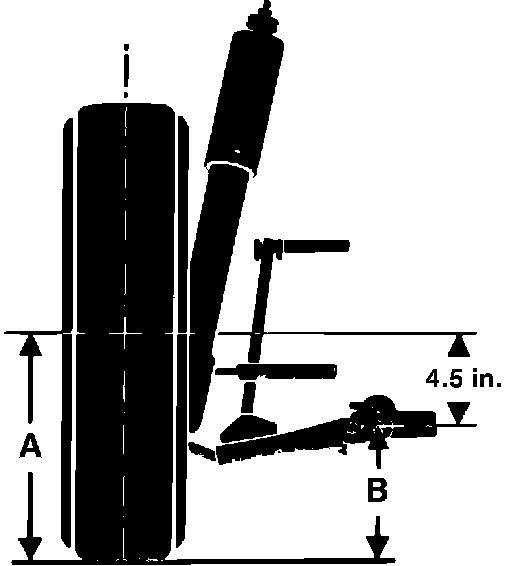 3. Value ``a'' minus 4.25 inches should equal value ``b.'' Value ``b'' equals the distance between the torsion bar center and the level surface on which the vehicle is positioned.
