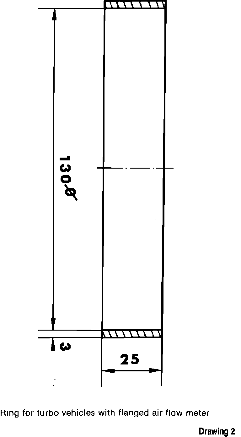 On all 911 Turbos with flanged air flow meter, a ring of 130 mm diameter together with sealing ring 930.110.122.00 is placed between the sealing plate and the airflow meter (drawing #2).