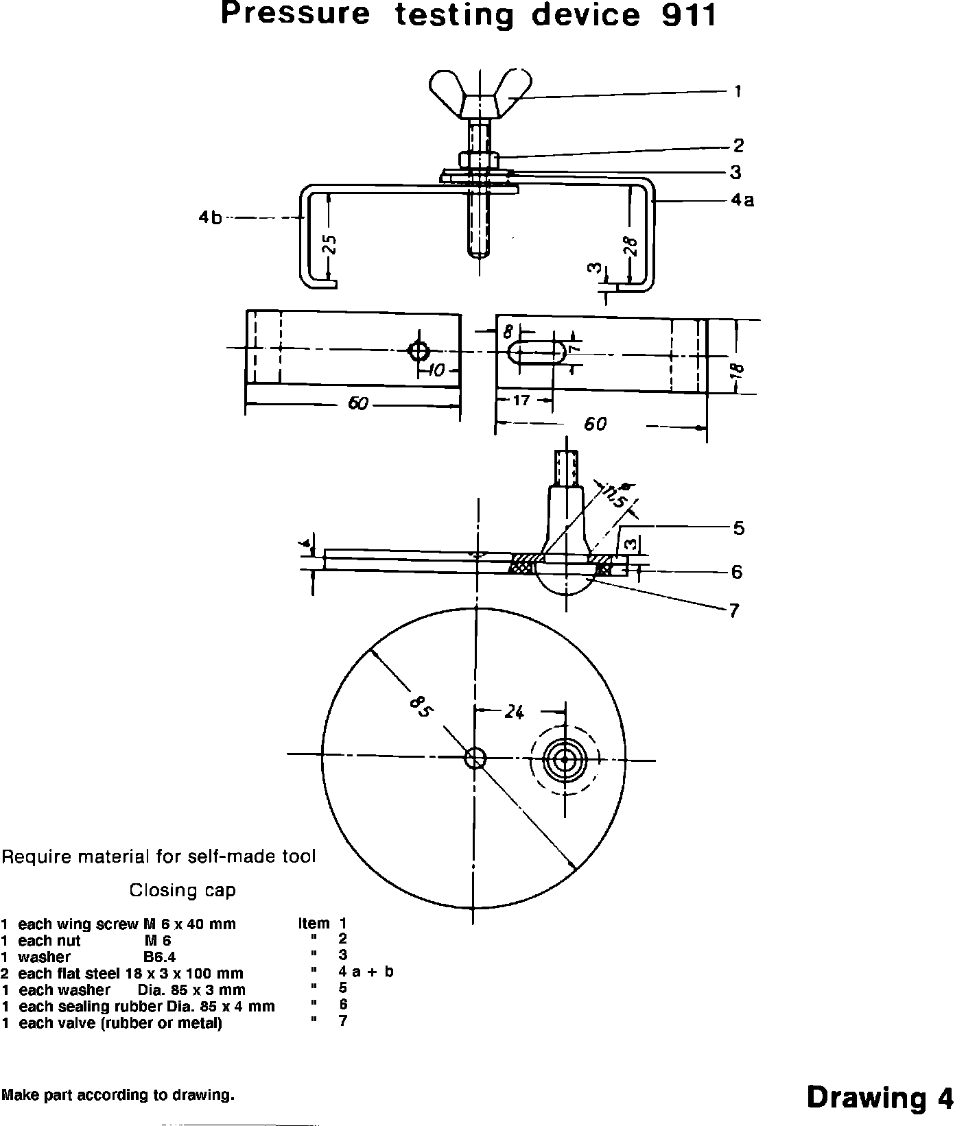 To perform the respective leak tests rationally, a plate can be made (drawing #1) which permits a 100% checkup for leaks on vehicles Type 928, 911 Turbo, and 924 Turbo. A different self-made tool will be used for the 922 and 924 (drawing #3).